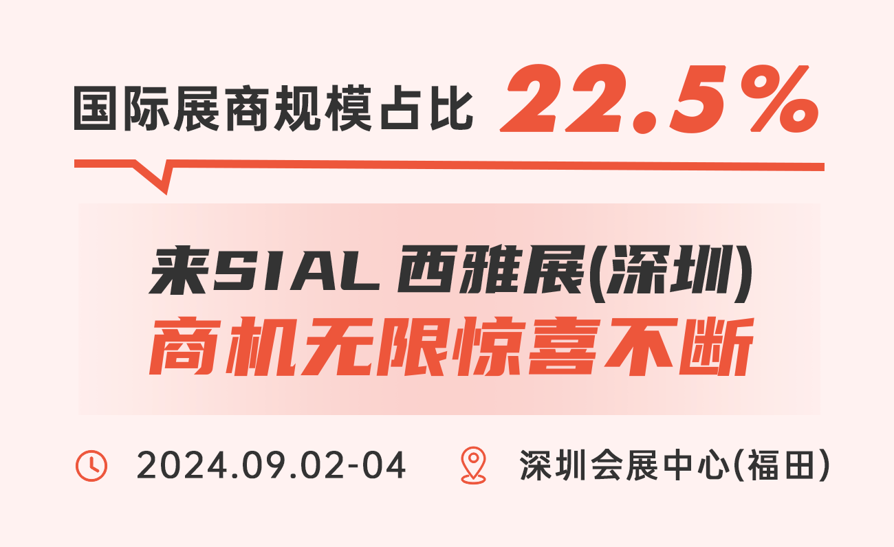 作為覆蓋全品類的華南食飲交易展,2024 SIAL西雅展(深圳)預(yù)計(jì)吸引全球43個國家和地區(qū)的1,500+展商參展和來自全球70+國家和地區(qū)的67,000+專業(yè)人士觀展。點(diǎn)擊馬上預(yù)登記,展會現(xiàn)場您將收獲超出預(yù)期的驚喜。
