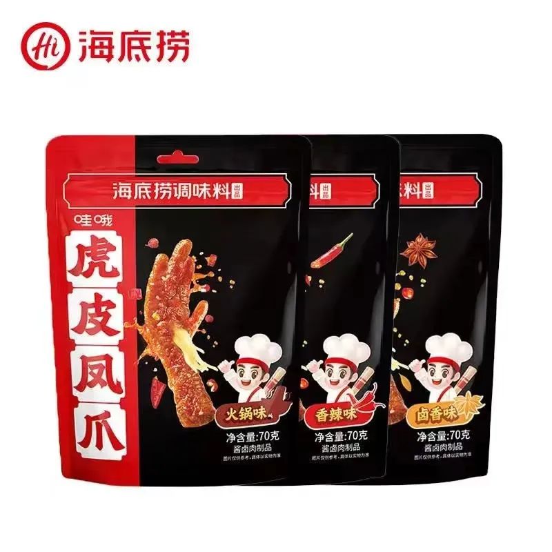 近日,頤海國際旗下,由海底撈調味料出品的零食品牌“哇哦”正籌劃推出新品類:虎皮鳳爪,并于9月25日開始全面鋪貨。據悉,該新品由海底撈核心底料供應商、海底撈兄弟公司頤海國際負責生產與推廣,目前部分平臺已開始有預售通道。首批新品為2支裝,涵蓋火鍋、鹵香、香辣3種口味,而儲備產品不僅包括上述口味的5支裝增強版,亦另外增加了微辣和濃香牛油兩種新口味。