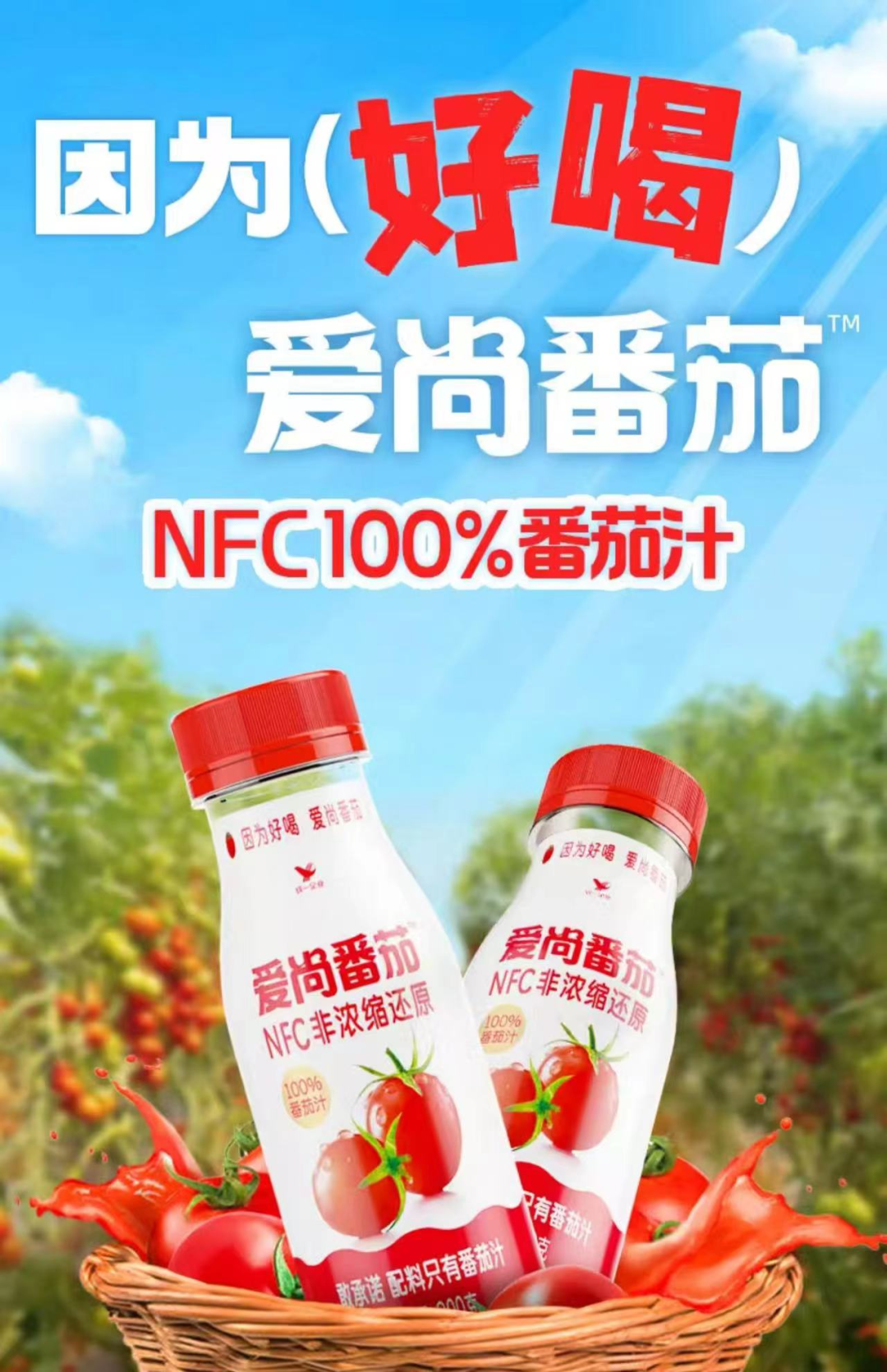 統一推出名為“愛尚番茄”的NFC100%番茄汁。產品據稱配料只有番茄、不加一滴水,精選糖度平均值≥7.8°的櫻桃番茄,平均每瓶約等于24個櫻桃番茄,富含豐富的番茄紅素和γ-氨基丁酸(GABA),可有效地提高自身組織、細胞的抗氧化能力。消費場景主打“佐餐飲品”、“廚房伴侶”等。