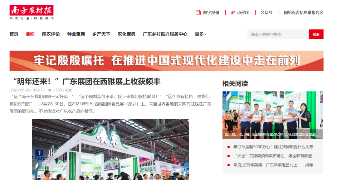 2023 SIAL西雅展(上海)獲得了超600家國(guó)內(nèi)外主流媒體、食飲行業(yè)媒體的聚焦,其中包括新華社、人民日?qǐng)?bào)、中國(guó)新聞社、中國(guó)日?qǐng)?bào)等權(quán)威媒體,均對(duì)展會(huì)給予了高度肯定。新華社評(píng)價(jià)道:SIAL 西雅展不僅有來自山東、吉林、浙江、上海、長(zhǎng)春等20多個(gè)省市的政府組團(tuán)參加,還通過農(nóng)業(yè)食品科技論壇、采購(gòu)商對(duì)接會(huì)、公益直播等同期活動(dòng),集中展示、銷售特色農(nóng)副產(chǎn)品,促進(jìn)農(nóng)業(yè)資源供給與市場(chǎng)需求的有效對(duì)接,精準(zhǔn)、深入助力鄉(xiāng)村振興落地開花。