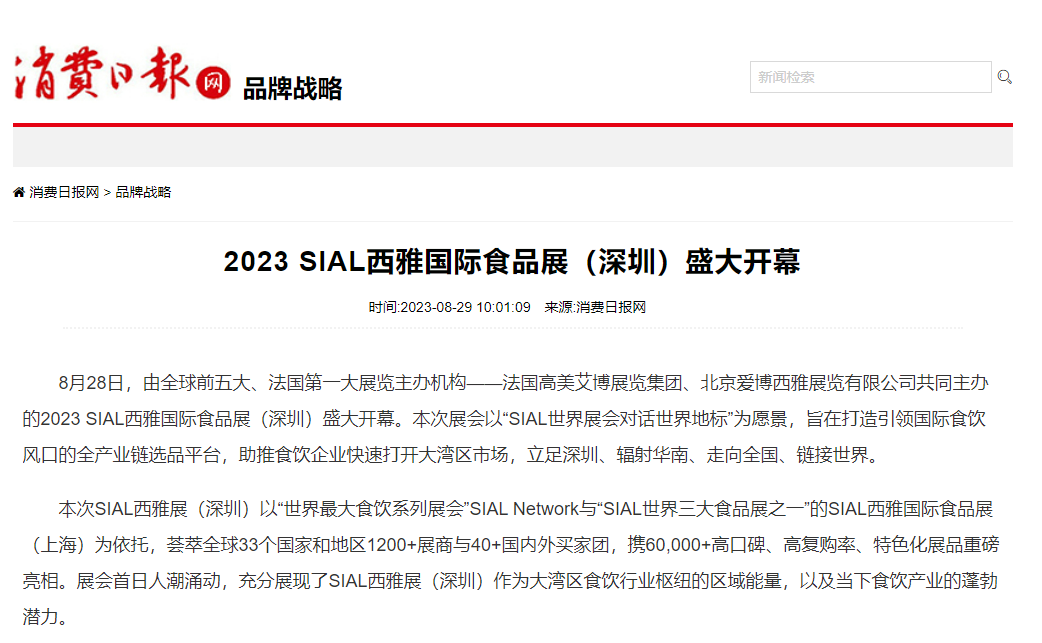 而在剛結(jié)束不久的2023 SIAL西雅展(深圳)中,人民網(wǎng)、深圳衛(wèi)視、湖北日?qǐng)?bào)、中國(guó)食品報(bào)、消費(fèi)日?qǐng)?bào)等主流官媒及相關(guān)領(lǐng)域權(quán)威媒體搭配新媒體矩陣平臺(tái)突破傳統(tǒng)傳播限制,實(shí)現(xiàn)展會(huì)、展商、產(chǎn)品360°宣傳與曝光。