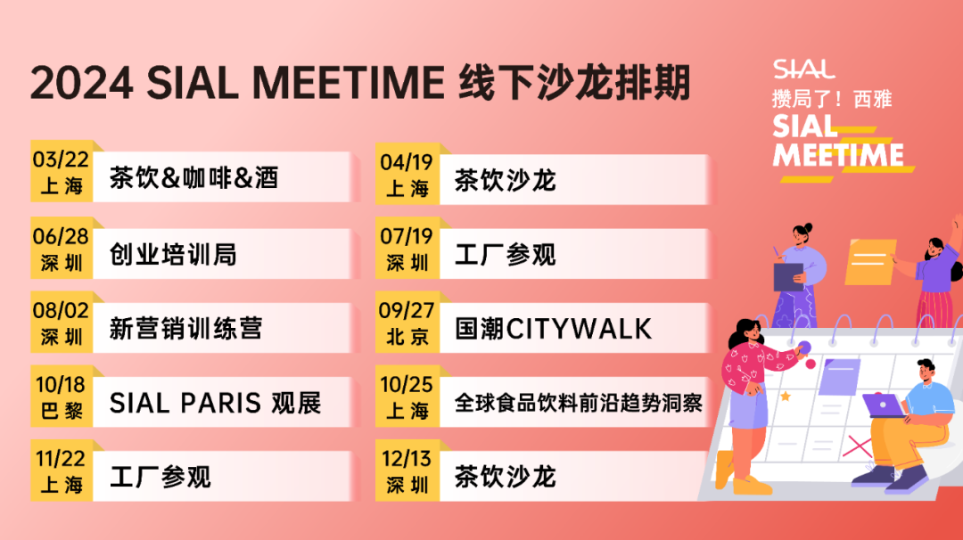 【SIAL Meetime 攢局了!西雅】是我們面向食品行業的全新主題系列沙龍活動,每一期以不同形式主題活動召集食品、飲料、餐飲行業從業者參與,在輕松愉悅的氛圍中獲取行業知識,結交新的伙伴,開拓更多潛在商機。